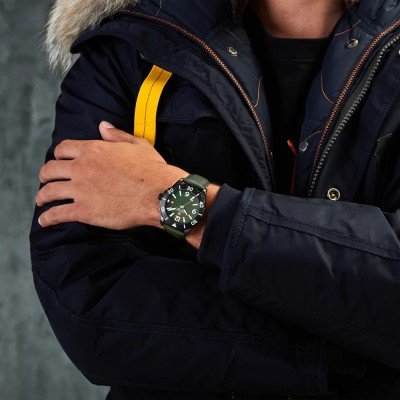 Zegarek jest wodoodporny do 10ATM. Oznacza to, że można w nim pływać. Zegarek ma Swiss Military 3+2.