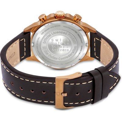 Zegarek marki Swiss Military Hanowa ma stal chirurgiczna kopertę 45 mm średnicy i jest wyposażony w pasek z materiału skóra. Wewnątrz koperty jest mechanizm Ronda i zegarek ma także szkiełko Sapphire.