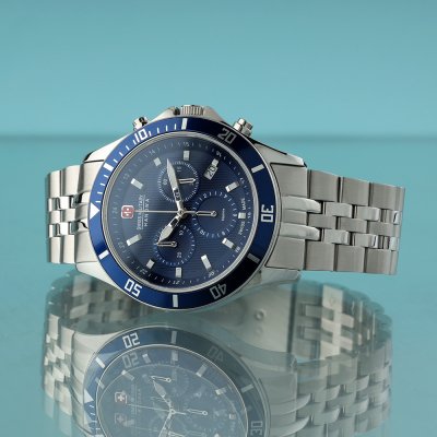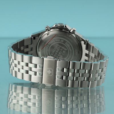 Zegarek marki Swiss Military Hanowa ma stal chirurgiczna kopertę 42 mm średnicy i jest wyposażony w pasek z materiału stal chirurgiczna. Wewnątrz koperty jest mechanizm Ronda i zegarek ma także szkiełko Sapphire.