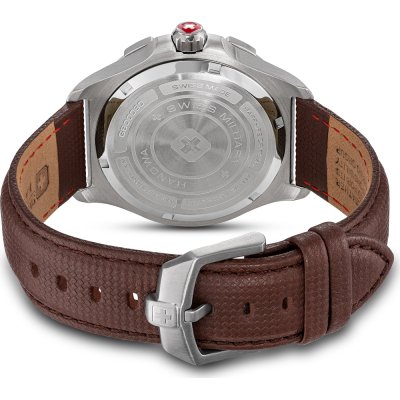 Zegarek marki Swiss Military Hanowa ma stal chirurgiczna kopertę 42 mm średnicy i jest wyposażony w pasek z materiału skóra. Wewnątrz koperty jest mechanizm Ronda i zegarek ma także szkiełko Sapphire.