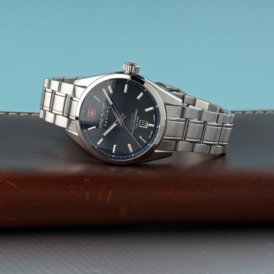 Zegarek marki Swiss Military Hanowa ma stal chirurgiczna kopertę 41 mm średnicy i jest wyposażony w pasek z materiału stal chirurgiczna. Wewnątrz koperty jest mechanizm Soprod i zegarek ma także szkiełko Sapphire.