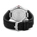 Zegarek marki Swiss Military Hanowa ma stal chirurgiczna kopertę 43 mm średnicy i jest wyposażony w pasek z materiału guma. Wewnątrz koperty jest mechanizm Ronda i zegarek ma także szkiełko Sapphire.