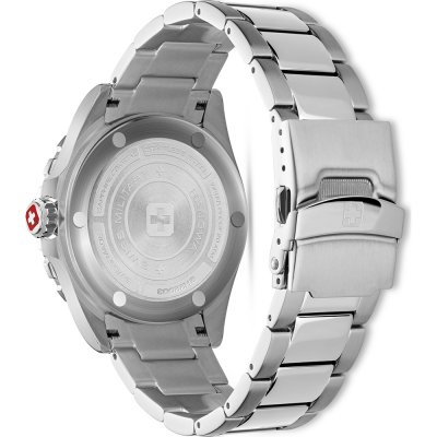 Zegarek marki Swiss Military Hanowa ma stal chirurgiczna kopertę 44 mm średnicy i jest wyposażony w pasek z materiału stal chirurgiczna. Wewnątrz koperty jest mechanizm Ronda i zegarek ma także szkiełko Sapphire.