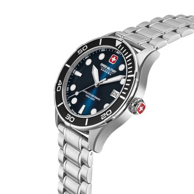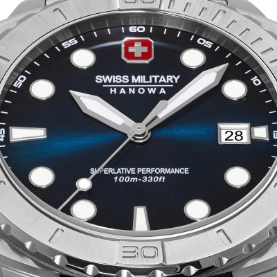 Zegarek marki Swiss Military Hanowa ma stal chirurgiczna kopertę 43 mm średnicy i jest wyposażony w pasek z materiału stal chirurgiczna. Wewnątrz koperty jest mechanizm Ronda i zegarek ma także szkiełko Sapphire.