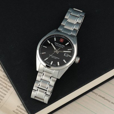 Zegarek marki Swiss Military Hanowa ma stal chirurgiczna kopertę 41 mm średnicy i jest wyposażony w pasek z materiału stal chirurgiczna. Wewnątrz koperty jest mechanizm Ronda i zegarek ma także szkiełko Sapphire.