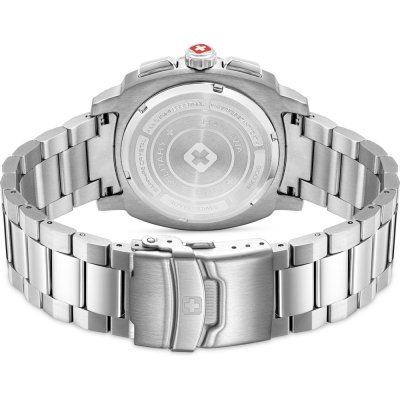 Zegarek marki Swiss Military Hanowa ma stal chirurgiczna kopertę 41 mm średnicy i jest wyposażony w pasek z materiału stal chirurgiczna. Wewnątrz koperty jest mechanizm Ronda i zegarek ma także szkiełko Sapphire.