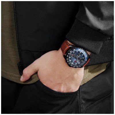 Zegarek marki Swiss Military Hanowa ma stal chirurgiczna kopertę 45 mm średnicy i jest wyposażony w pasek z materiału skóra. Wewnątrz koperty jest mechanizm Ronda i zegarek ma także szkiełko Sapphire.