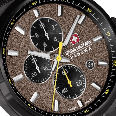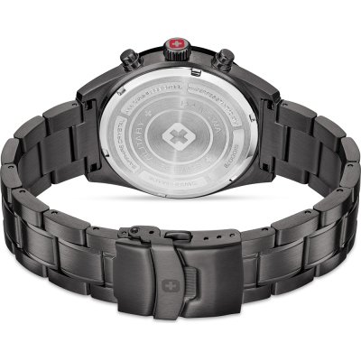 Zegarek marki Swiss Military Hanowa ma stal chirurgiczna kopertę 43 mm średnicy i jest wyposażony w pasek z materiału stal chirurgiczna. Wewnątrz koperty jest mechanizm Ronda i zegarek ma także szkiełko Sapphire.