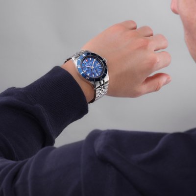 Zegarek jest wodoodporny do 10ATM. Oznacza to, że można w nim pływać. Zegarek ma Swiss Military 3+2.