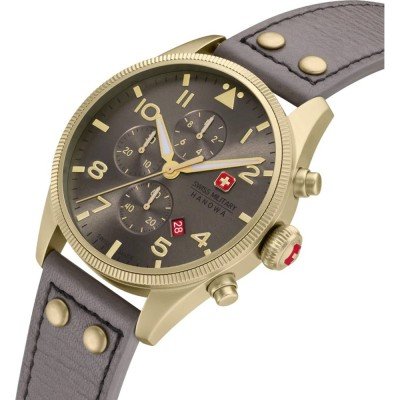 Zegarek marki Swiss Military Hanowa ma stal chirurgiczna kopertę 43 mm średnicy i jest wyposażony w pasek z materiału skóra. Wewnątrz koperty jest mechanizm Ronda i zegarek ma także szkiełko Sapphire.