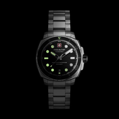 Zegarek marki Swiss Military Hanowa ma stal chirurgiczna kopertę 40 mm średnicy i jest wyposażony w pasek z materiału stal chirurgiczna. Wewnątrz koperty jest mechanizm Ronda i zegarek ma także szkiełko Sapphire.
