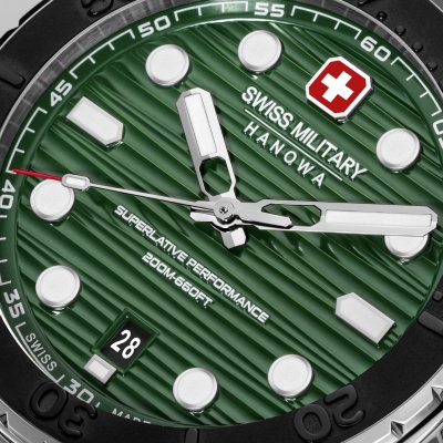Zegarek jest wodoodporny do 20ATM. Oznacza to, że zegarek nadaje się do nurkowania. Zegarek ma Swiss Military 3+2.