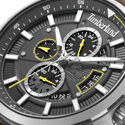 Zegarek marki Timberland ma stal chirurgiczna kopertę 46 mm średnicy i jest wyposażony w pasek z materiału skóra. Wewnątrz koperty jest mechanizm Miyota i zegarek ma także szkiełko Mineralny.