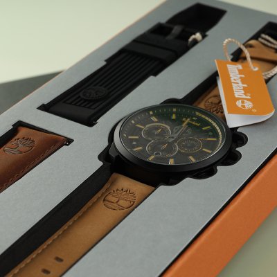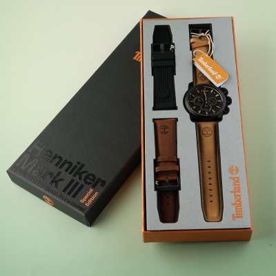 Zegarek marki Timberland ma aluminium kopertę 46 mm średnicy i jest wyposażony w pasek z materiału guma. Wewnątrz koperty jest mechanizm Seiko Instruments Inc. i zegarek ma także szkiełko Mineralny.