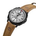 Zegarek marki Timberland ma Stop metali kopertę 48 mm średnicy i jest wyposażony w pasek z materiału skóra. Wewnątrz koperty jest mechanizm Seiko i zegarek ma także szkiełko Mineralny.