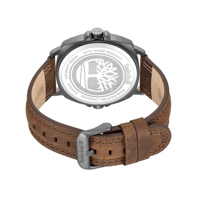 Zegarek marki Timberland ma Stop metali kopertę 48 mm średnicy i jest wyposażony w pasek z materiału skóra. Wewnątrz koperty jest mechanizm Seiko i zegarek ma także szkiełko Mineralny.