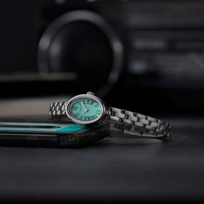 Zegarek marki Timex ma Stop metali kopertę 19 mm średnicy i jest wyposażony w pasek z materiału stal chirurgiczna. Wewnątrz koperty jest mechanizm Timex i zegarek ma także szkiełko Mineralny.