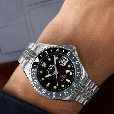 Zegarek marki Timex ma stal chirurgiczna kopertę 42 mm średnicy i jest wyposażony w pasek z materiału stal chirurgiczna. Wewnątrz koperty jest mechanizm Timex i zegarek ma także szkiełko Sapphire.