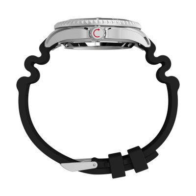 Zegarek marki Timex ma stal chirurgiczna kopertę 44 mm średnicy i jest wyposażony w pasek z materiału guma. Wewnątrz koperty jest mechanizm Timex i zegarek ma także szkiełko Pojedyncze szafirowe szkiełko anty-refleksyjne.
