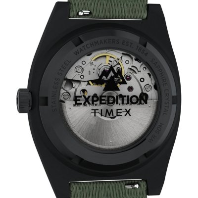 Zegarek marki Timex ma stal chirurgiczna kopertę 39 mm średnicy i jest wyposażony w pasek z materiału Z materiału. Wewnątrz koperty jest mechanizm Timex i zegarek ma także szkiełko Sapphire.