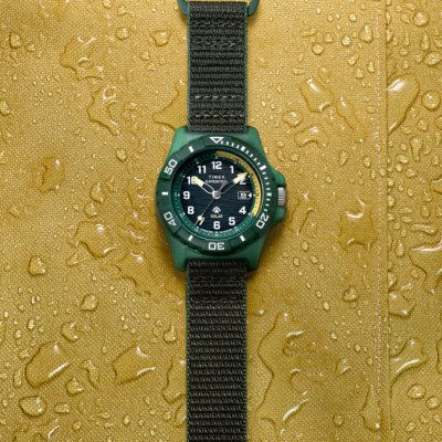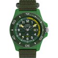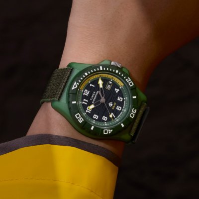 Zegarek marki Timex ma Plastik tide ocean kopertę 46 mm średnicy i jest wyposażony w pasek z materiału Plastik tide ocean. Wewnątrz koperty jest mechanizm Timex i zegarek ma także szkiełko Mineralny.
