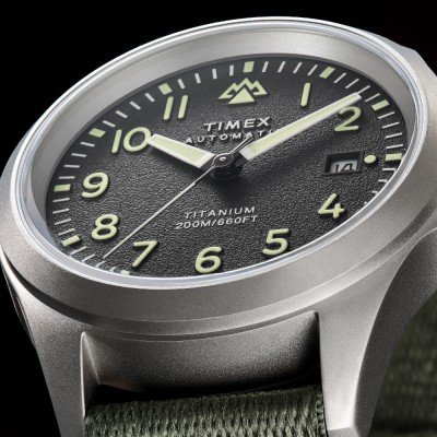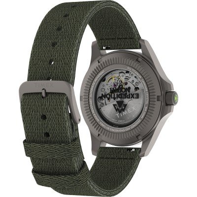Zegarek marki Timex ma Tytan kopertę 41 mm średnicy i jest wyposażony w pasek z materiału Plastik tide ocean. Wewnątrz koperty jest mechanizm Timex i zegarek ma także szkiełko Pojedyncze szafirowe szkiełko anty-refleksyjne.