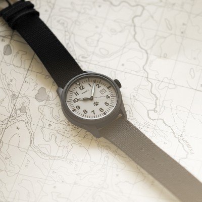 Zegarek marki Timex ma BioCeramika kopertę 43 mm średnicy i jest wyposażony w pasek z materiału Tkanina z tworzywa sztucznego z recyklingu. Wewnątrz koperty jest mechanizm Timex i zegarek ma także szkiełko Mineralny.