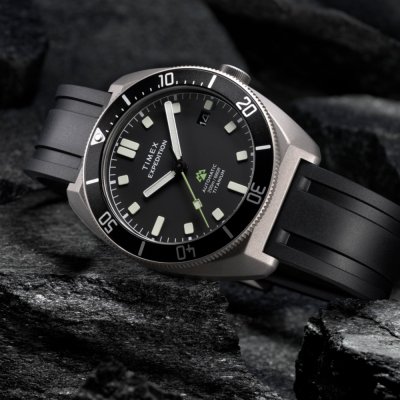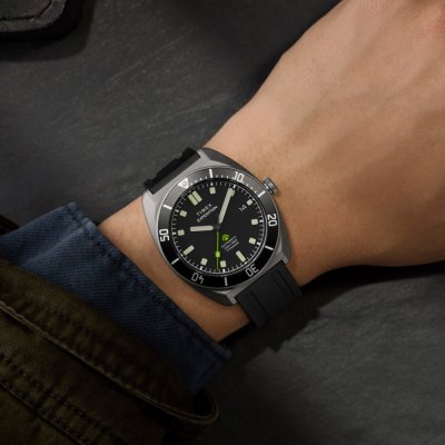 Zegarek marki Timex ma Tytan kopertę 41 mm średnicy i jest wyposażony w pasek z materiału Tworzywa sztuczne pochodzenia biologicznego. Wewnątrz koperty jest mechanizm Timex i zegarek ma także szkiełko Sapphire.