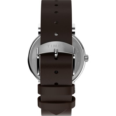 Zegarek marki Timex ma Stop metali kopertę 38 mm średnicy i jest wyposażony w pasek z materiału skóra. Wewnątrz koperty jest mechanizm Timex i zegarek ma także szkiełko Mineralny.
