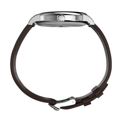 Zegarek marki Timex ma Stop metali kopertę 38 mm średnicy i jest wyposażony w pasek z materiału skóra. Wewnątrz koperty jest mechanizm Timex i zegarek ma także szkiełko Mineralny.