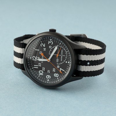 Zegarek marki Timex ma Stop metali kopertę 41 mm średnicy i jest wyposażony w pasek z materiału Z materiału. Wewnątrz koperty jest mechanizm Timex i zegarek ma także szkiełko Mineralny.