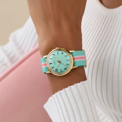 Zegarek marki Timex ma stal chirurgiczna kopertę 34 mm średnicy i jest wyposażony w pasek z materiału Z materiału. Wewnątrz koperty jest mechanizm Timex i zegarek ma także szkiełko Akryl.
