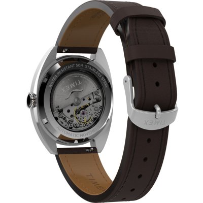 Zegarek marki Timex ma stal chirurgiczna kopertę 37 mm średnicy i jest wyposażony w pasek z materiału skóra. Wewnątrz koperty jest mechanizm Timex i zegarek ma także szkiełko Mineralny.