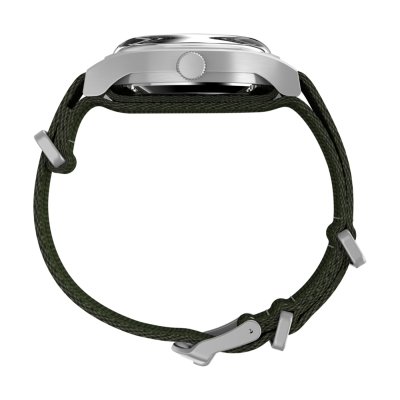 Zegarek marki Timex ma stal chirurgiczna kopertę 40 mm średnicy i jest wyposażony w pasek z materiału Z materiału. Wewnątrz koperty jest mechanizm Timex i zegarek ma także szkiełko Akryl.
