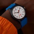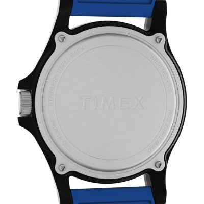 Zegarek marki Timex ma Żywica kopertę 40 mm średnicy i jest wyposażony w pasek z materiału guma. Wewnątrz koperty jest mechanizm Timex i zegarek ma także szkiełko Akryl.