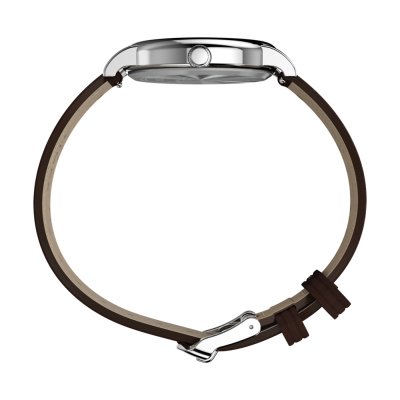 Zegarek marki Timex ma Stop metali kopertę 38 mm średnicy i jest wyposażony w pasek z materiału skóra. Wewnątrz koperty jest mechanizm Timex i zegarek ma także szkiełko Mineralny.