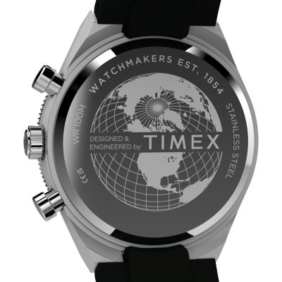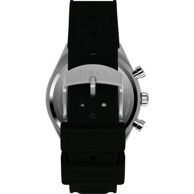 Zegarek marki Timex ma stal chirurgiczna kopertę 40 mm średnicy i jest wyposażony w pasek z materiału guma. Wewnątrz koperty jest mechanizm Timex i zegarek ma także szkiełko Mineralny.