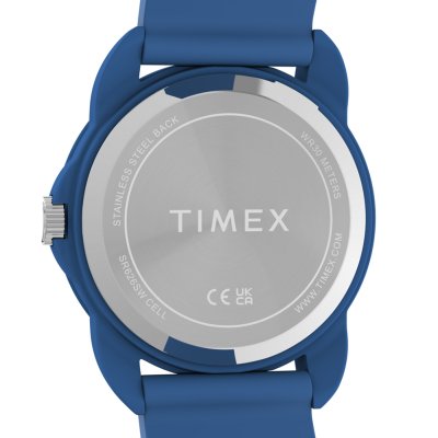 Zegarek marki Timex ma Żywica kopertę 30 mm średnicy i jest wyposażony w pasek z materiału guma. Wewnątrz koperty jest mechanizm Timex i zegarek ma także szkiełko Akryl.