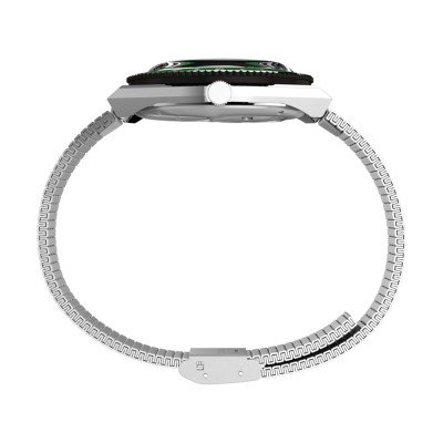 Zegarek marki Timex ma stal chirurgiczna kopertę 38 mm średnicy i jest wyposażony w pasek z materiału stal chirurgiczna. Wewnątrz koperty jest mechanizm Timex i zegarek ma także szkiełko Akryl.