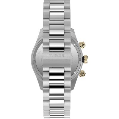 Zegarek marki Timex ma stal chirurgiczna kopertę 39 mm średnicy i jest wyposażony w pasek z materiału stal chirurgiczna. Wewnątrz koperty jest mechanizm Timex i zegarek ma także szkiełko Mineralny.