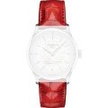 Pasek do zegarka Tissot jest wykonany z materiału skóra i jest zamocowany do zegarka za pomocą… bolec quick release. Ten pasek ma szerokość 18 mm. Ten pasek nie ma prostego mocowania, co oznacza, że pasuje wyłącznie do zegarków z poniższej listy.