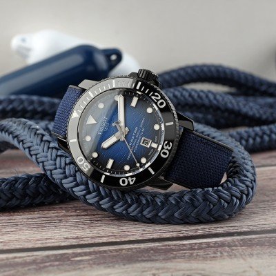 Zegarek marki Tissot ma stal chirurgiczna kopertę 46 mm średnicy i jest wyposażony w pasek z materiału guma. Wewnątrz koperty jest mechanizm ETA i zegarek ma także szkiełko Pojedyncze szafirowe szkiełko anty-refleksyjne.