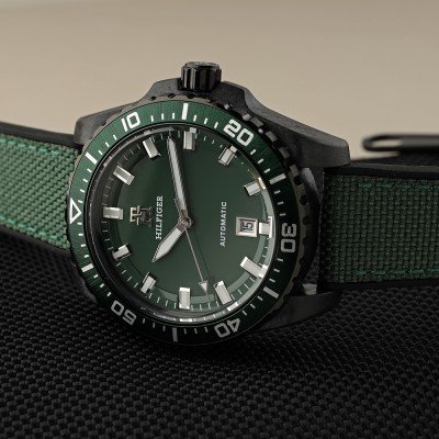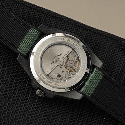 Zegarek marki Tommy Hilfiger ma Żywica wzmacniana węglowo kopertę 42 mm średnicy i jest wyposażony w pasek z materiału guma. Wewnątrz koperty jest mechanizm Miyota i zegarek ma także szkiełko Mineralny.