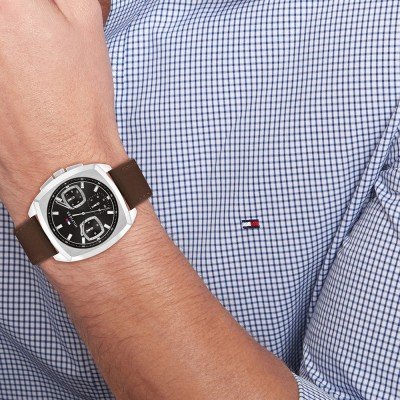 Zegarek marki Tommy Hilfiger ma stal chirurgiczna kopertę 41 mm średnicy i jest wyposażony w pasek z materiału skóra. Wewnątrz koperty jest mechanizm Seiko Instruments Inc. i zegarek ma także szkiełko Mineralny.