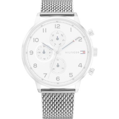 Pasek do zegarka Tommy Hilfiger jest wykonany z materiału stal nierdzewna i jest zamocowany do zegarka za pomocą… kołki sprężyste. Ten pasek ma szerokość 21 mm i zamyka się za pomocą zapięcie milanese. Ten pasek ma proste mocowanie, co oznacza, że pasuje do.