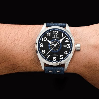 Zegarek marki TW Steel ma stal chirurgiczna kopertę 48 mm średnicy i jest wyposażony w pasek z materiału materiał na skórze. Wewnątrz koperty jest mechanizm Miyota i zegarek ma także szkiełko Utwardzone szkiełko mineralne.