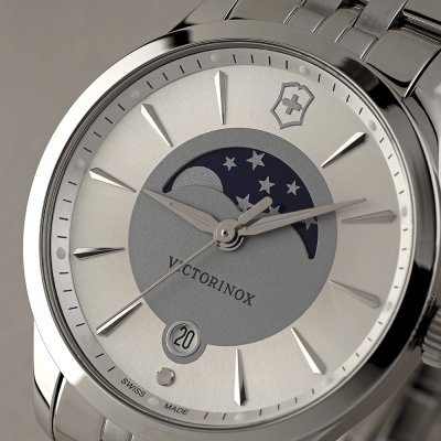 Zegarek marki Victorinox ma stal chirurgiczna kopertę 35 mm średnicy i jest wyposażony w pasek z materiału stal chirurgiczna. Wewnątrz koperty jest mechanizm Ronda i zegarek ma także szkiełko Sapphire.