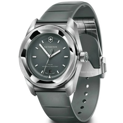 Zegarek marki Victorinox ma stal chirurgiczna kopertę 39 mm średnicy i jest wyposażony w pasek z materiału guma. Wewnątrz koperty jest mechanizm Ronda i zegarek ma także szkiełko Pojedyncze szafirowe szkiełko anty-refleksyjne.