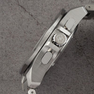 Zegarek marki Victorinox ma stal chirurgiczna kopertę 43 mm średnicy i jest wyposażony w pasek z materiału stal chirurgiczna. Wewnątrz koperty jest mechanizm Ronda i zegarek ma także szkiełko Sapphire.