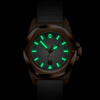 Zegarek marki Victorinox ma stal chirurgiczna kopertę 32 mm średnicy i jest wyposażony w pasek z materiału guma. Wewnątrz koperty jest mechanizm Ronda i zegarek ma także szkiełko Sapphire.